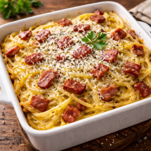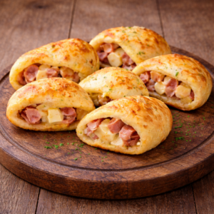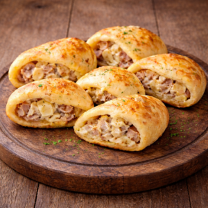mit Zwiebeln, Peperoni, Sauce Hollandaise & Käse überbacken