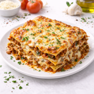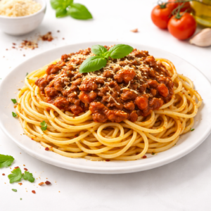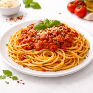mit Tomatensauce, Mozzarella, Rinderhackfleisch, Paprika, Zwiebeln