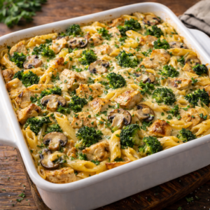 mit Hähnchen, Brokkoli, Sauce Hollandaise