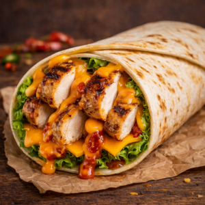 mit gegrillter Hähnchenbrust, Cheddar & würziger Sauce