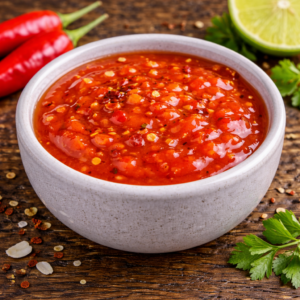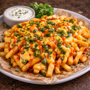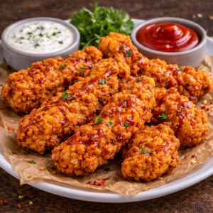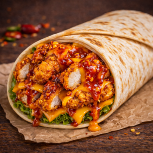 (scharf) mit Hot Chicken Strips, Hot-Chilisauce und Cheddar