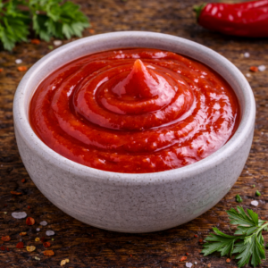 mit Tomatensauce, Mozzarella, Rinder-Pepperoni, getrocknete Chilischoten