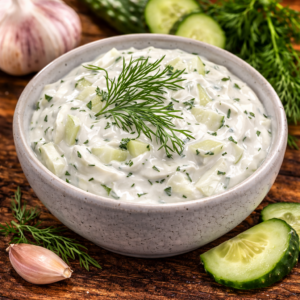 mit Zwiebeln, Hirtenkäse, Peperoni & Tzatziki