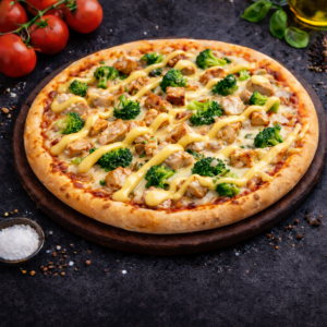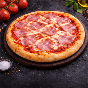 mit Tomatensauce, Käse, Putenschinken, Champignons, Oliven, Paprika
