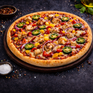mit Tomatensoße Chilisauce, Hähnchenbrust, Paprika, Mais, Jalapeños, rote Zwiebeln